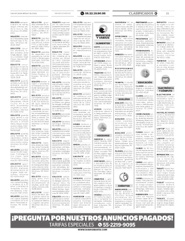 JUEVES 28 DE MARZO DE 2024 CIUDAD DE MÉXICO 55.22.19.90.95 Fletes CLASIFICADOS B! 21