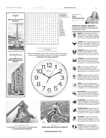 UN EDIFICIO puso su alarma de reloj mecánico a las 9 de la mañana. ideal es lila. Tus números 41-33.