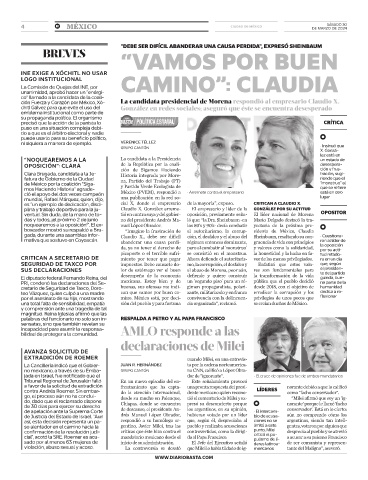 PRI, condenó las declaraciones del Se- mexicana. Estoy bien y de un ´segundo piso´ para un ré- pública que el pueblo decidió na parte de la
