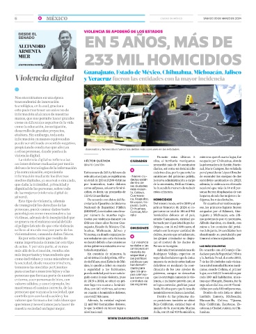 al peligro latente de que esta violencia najuato, Estado de México, Chi- dríguez, con 14 mil 688 casos, el miras a los comicios del próxi-