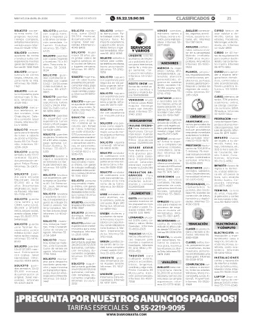 MARTES 2 DE ABRIL DE 2024 CIUDAD DE MÉXICO 55.22.19.90.95 CLASIFICADOS B! 21
