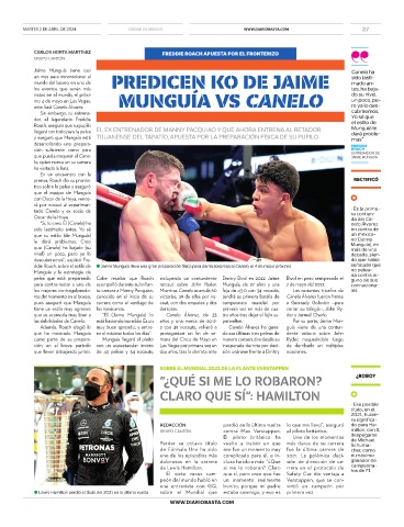 Además, Roach elogió lo muy buen aprendiz, y entre- 2 con 39 nocauts, volverá a Canelo Álvarez ha gana- guía viene de una contun-