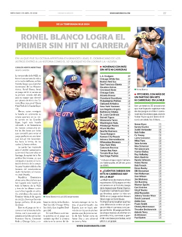Este es el juego sin hit ni Sox (20) y Los Angeles Dod- Espada, que se logró, ade- go sin hits ni carrera y un jue- Christy Mathewson (2)