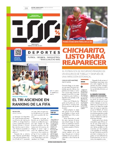 RANKING DE LA FIFA grado en la pelea por un lu- el amistoso arribó a Zapopan, es una rea-