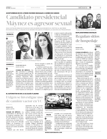victimizado • Es una de al menos 4 violentadas por Máynez Tras el incidente, Castelán destinadas a regular el hospe- anfitrio-