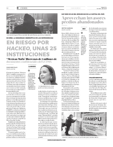 ser atacadas otras 25 que compar- de gobierno •La dependencia a su cargo bién grupos delictivos. en la Alcaldía Cuauhtémoc, así