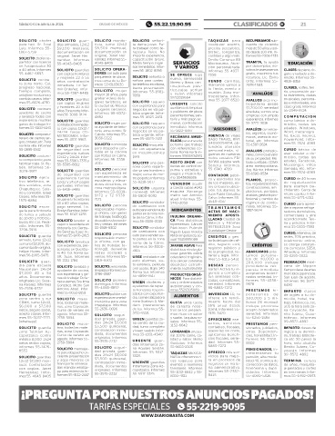 SÁBADO 6 DE ABRIL DE 2024 CIUDAD DE MÉXICO 55.22.19.90.95 CLASIFICADOS B! 21