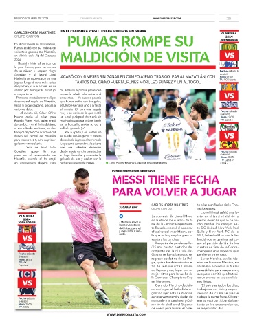 JORNADA 14 • Messi vuelve a nal de la Concachampions an- cho perder los cotejos an-