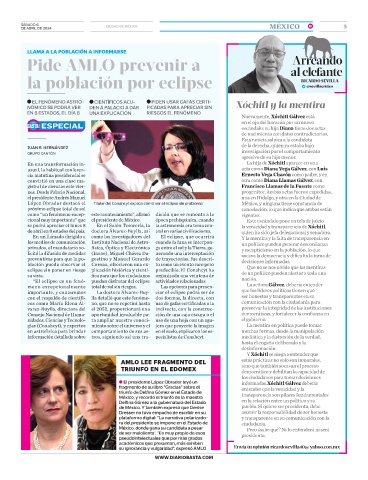 ●EL FENÓMENO ASTRO- ●CIENTÍFICOS ACU- ●PIDEN USAR GAFAS CERTI- Xóchitl y la mentira