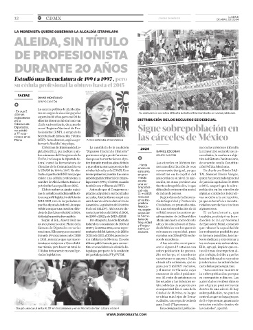 volvió a ocupar una curul en el Re- Federal (ALDF). Ahí estuvo du- na, según tía una sobrepoblación de 11 algunos reos.