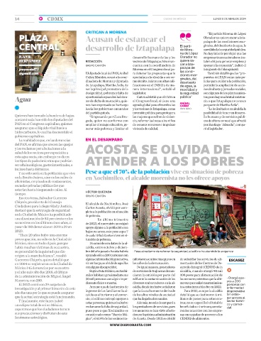 CENTRAL desarrollo de Iztapalapa El parti- ginales, del desabasto de agua, la