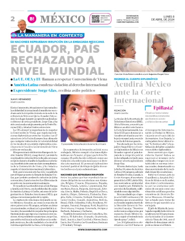 en Quito durante el asalto de la policía ecuatoria- violación a la soberanía mexicana y al dere- detener al exvicepresidente embajada y romper con lo es-