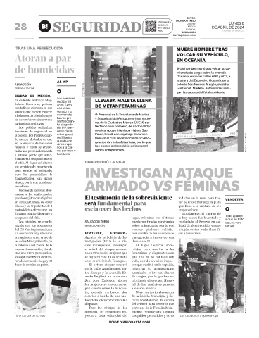 que dos sujetos que viajaban El testimonio de la sobreviviente indicios en la zona para tra- VENDETTA
