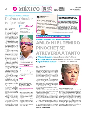 la nación bajó la mirada y se PRESIDENTE DE MÉXICO Por ello, según sus palabras, Noboa debe estar Luego de la formal ruptura de relaciones di-