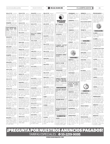 JUEVES 11 DE ABRIL DE 2024 CIUDAD DE MÉXICO 55.22.19.90.95 CLASIFICADOS B! 21