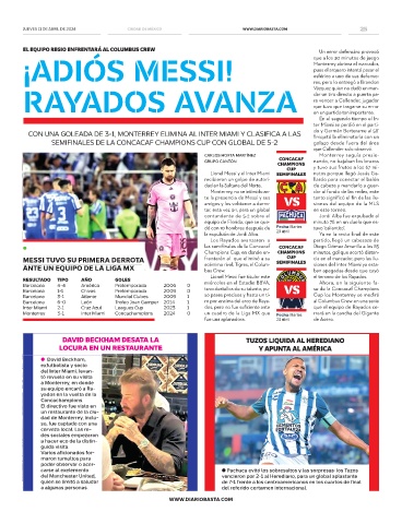 ANTE UN EQUIPO DE LA LIGA MX acérrimo rival, Tigres, el Colum- siones del Inter Miami ya esta- •Chicharito