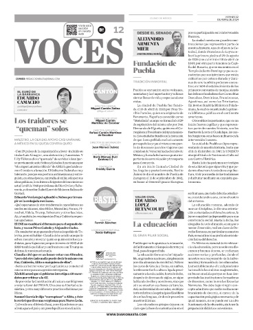@cidquijote@yahoo. Miguel Cantón Zetina La ciudad de Puebla fue funda- En 1646 se fundó la Biblioteca Palafo-