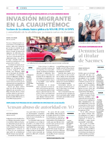 ro Obregón denunciaron abuso “La licenciada Castro me dijo colaboradores de la alcaldesa Lía • Raquel SACMEX, o quien resulte