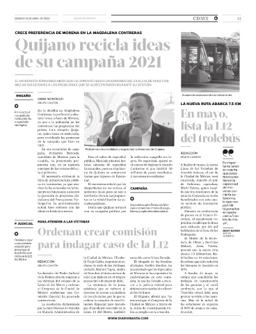 El morenista evidenció la varias que dejaron de funcio- y con escasos resultados. la Ciudad de México, será trolebuses