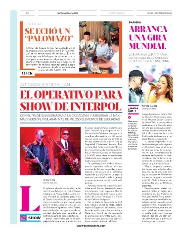 coordinar el operativo con 150 perso- con el tema Shakira este fin de semana en su