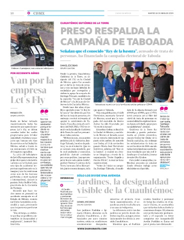 aeronaves que opera la em- porque to- dato del PAN, PRI y PRD se re- “el rey de la basura”. su candidatura”, declaró. Taboada