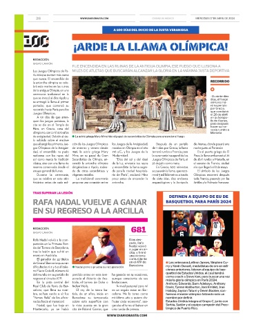 Los Juegos Olímpicos de Pa- MILES DE ATLETAS QUE BUSCARÁN ALCANZAR LA GLORIA EN LA MÁXIMA JUSTA DEPORTIVA