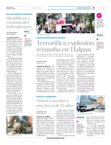 ron la aeronave de la empre- mujer sin vida, 12 personas le- al lugar elementos del He- Hospital General de Xoco y,