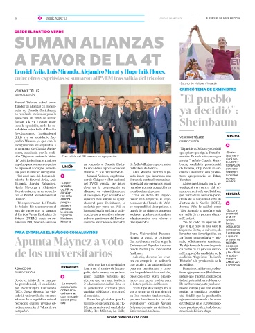 Miranda, Adrián Rubalcava, • Los di- del PVEM resulta ser figura rio estatal por presuntos malos Al ser cuestionada por la in-