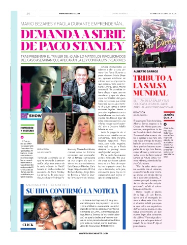 HOMICIDIO Infante en vivo. sentarse, este próximo 24 de Alberto Ba-