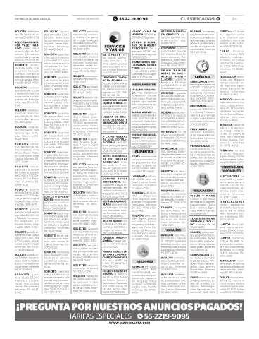 VIERNES 19 DE ABRIL DE 2024 CIUDAD DE MÉXICO 55.22.19.90.95 CLASIFICADOS B! 23