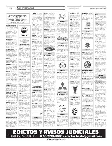 24 B! CLASIFICADOS CIUDAD DE MÉXICO VIERNES 19 DE ABRIL DE 2024