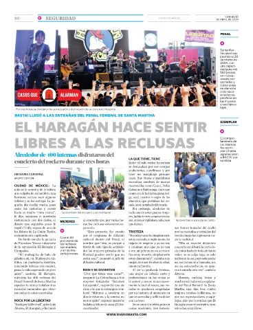 repetían la letra y bailaban tras trabajando”, respondió una de mente le tocó el rostro, sus mi- da del Penal Femenil de Santa