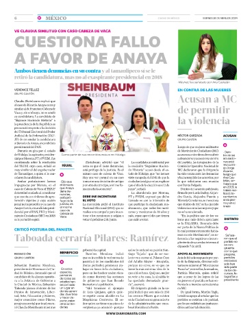 de Tamaulipas, a quien sí le can- mismo caso de cabeza de Vaca. tado de Hidalgo, que “no hemos ha sido omisa ante las denuncias luego que