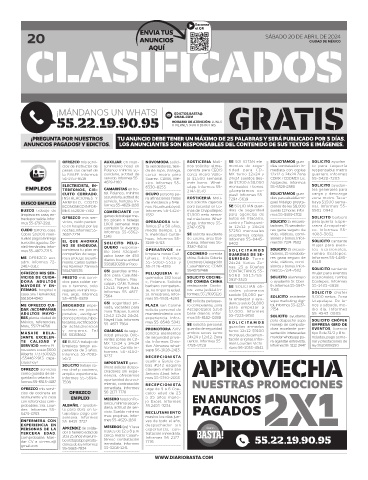 ¡PREGUNTA POR NUESTROS TU ANUNCIO DEBE TENER UN MÁXIMO DE 25 PALABRAS Y SERÁ PUBLICADO POR 3 DÍAS.