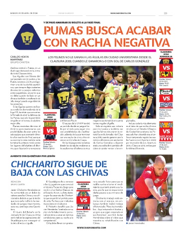 boleto directo a Liguilla. CH14 debe llevar con premu- Chivas. ● Javier Hernández