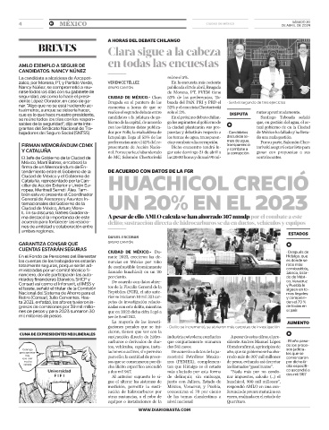 bajadores del Seguro Social (SNTSS). dos por Polls; la exalcaldesa de puestas y debatirán respecto a • Candidatos de México ha fallado y ha lleva-