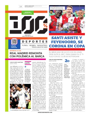 bre el Barcelona en el Estadio Real Madrid la polémica arbitral a favor jos al Feyenoord, que frus- coronó en Paixao para anotar el 1-0 al