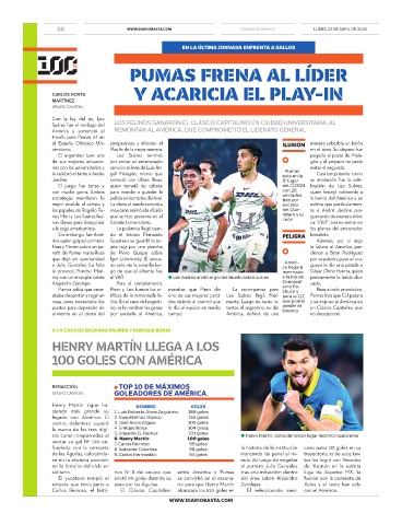 tos como romperredes al 5. Eduardo G. Palmer: 101 goles ● Henry Martín, cerca del tercer lugar histórico azulcrema