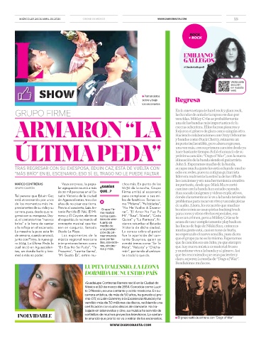 junto con Firme, la nueva gi- música regional mexicana con panta- tante Guaynaa, quien se que el grupo ya no es lo mismo. Esperamos