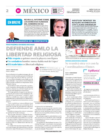 ●El Estado laico es libertad religiosa Se reunirá otra vez con la