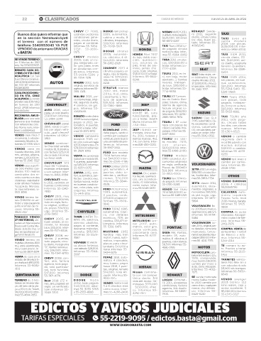 22 B! CLASIFICADOS CIUDAD DE MÉXICO JUEVES 25 DE ABRIL DE 2024