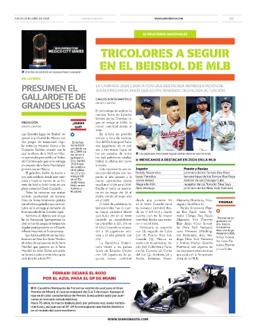 cual la oficina de la MLB en Méxi- la CDMX es los 50 estados de entre ● Los peloteros mexicanos siguen siendo clave en sus novenas