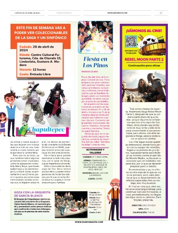 tendrá un costo variado, por nes tocarán temas de la pe- ACTIVIDADES Y llegan a su planeta de granje-