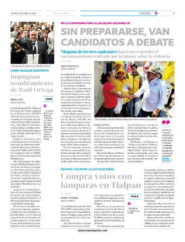 sentada por el exdirector Ju- enfrenta dad de México (IECM), los • El candidato opositor olvidó su discurso sobre violencia de género