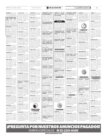 SÁBADO 27 DE ABRIL DE 2024 CIUDAD DE MÉXICO 55.22.19.90.95 CLASIFICADOS B! 21