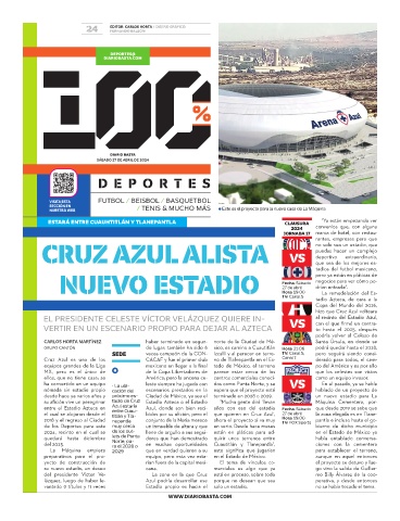 EL PRESIDENTE CELESTE VÍCTOR VELÁZQUEZ QUIERE IN- al recinto del Estadio Azul,