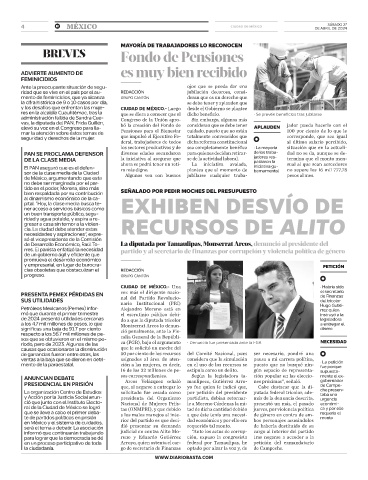 de Desarrollo Económico, Raúl To- La diputada por Tamaulipas, Monserrat Arcos, denunció al presidente del