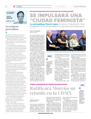 aplicaron la de "juntos, pero no Bautista, Blanca Aidé García Lamas y Clara Brugada se re- cados se encuentra la fundación