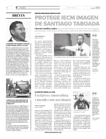 ticia, seguridad y protección dejó li- criterios para el resto de mi- representar algún daño a la hay elementos para darle un SANTILLÁN