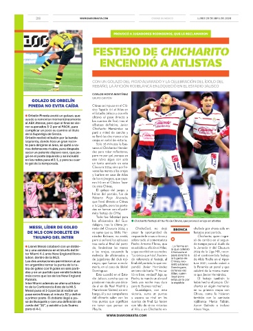 ter Miami 4-1 ante New England Revo- molestia de aficionados y “Lo único que hizo”, hacien- Chicharito el dó el controvertido festejo